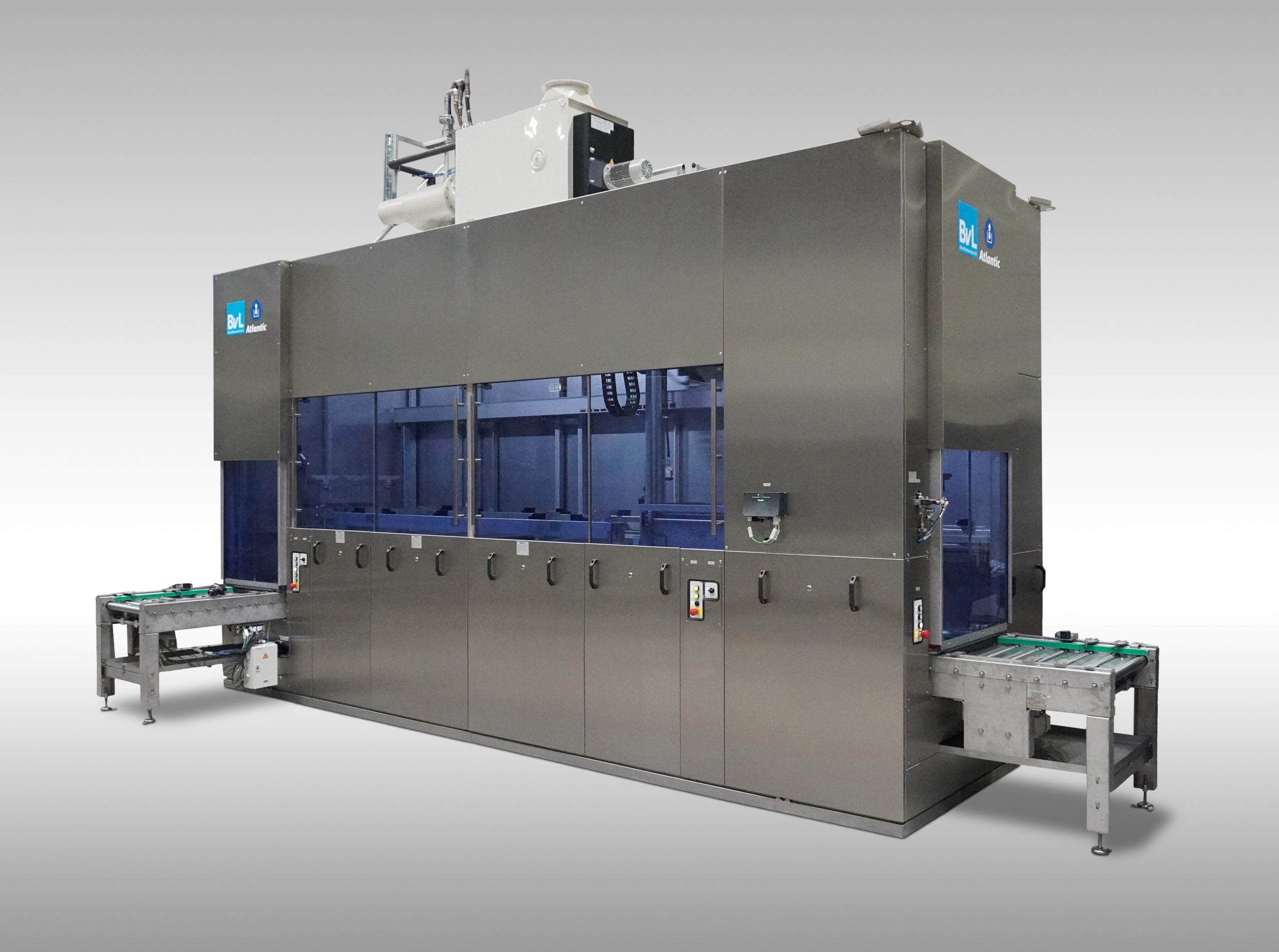 Die erste Reinigungsanlage dient der Vorreinigung nach der mechanischen Bearbeitung, während die zweite Anlage für die Feinreinigung nach dem ECM-Prozess (Elektrochemische Metallbearbeitung) genutzt wird. Mit einer Taktzeit von 156 Sekunden pro Charge (vier Bauteile) bieten die Atlantic Anlagen eine effektive mehrstufige Tauchreinigungslösung mit Ultraschallunterstützung. Die Werkstückträger werden mithilfe eines automatisierten Portalumsetzers in die Reinigungsbecken eingetaucht, wobei die oszillierende Hubbewegung des Warenträgers die Reinigung unterstützt.
