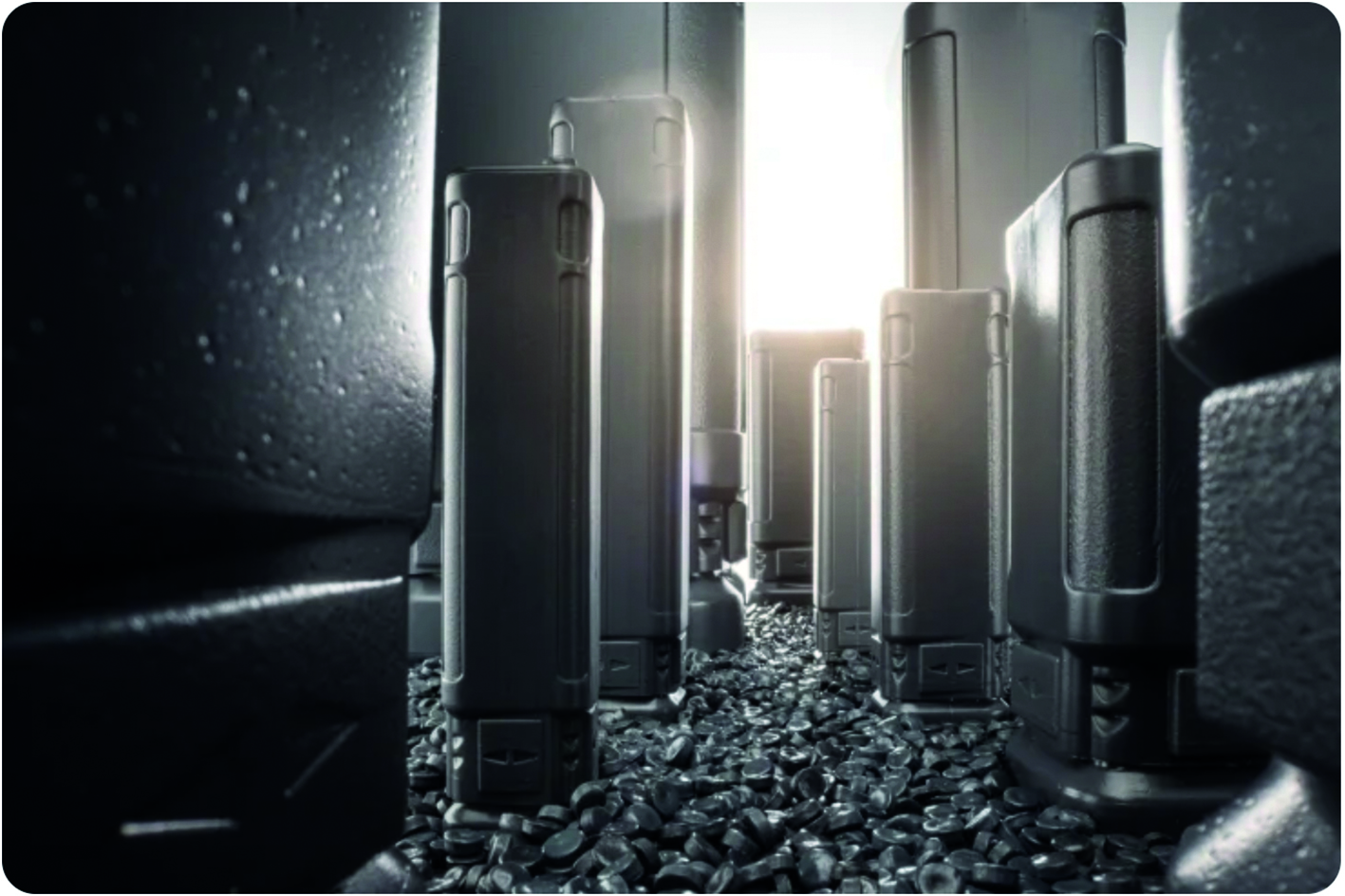Die dunkelgrauen Rezyklatverpackungen, welche HORN bezieht, werden durch mechanisches Recycling bearbeitet und anschließend compoundiert. Dies bedeutet, dass das geschredderte Recyclingmaterial eingeschmolzen und mit Additiven so aufbereitet wird, so dass immer die gleichen Materialeigenschaften entstehen. Diese Additive helfen, die physikalischen und chemischen Eigenschaften des recycelten Materials zu stabilisieren und zu optimieren. Dies ist wichtig, um die Fertigungsprozesse stabil halten zu können. Durch gezielte Maßnahmen und die richtige Auswahl von Additiven kann die Leistung des recycelten Kunststoffs stabilisiert und gegebenenfalls erheblich verbessert werden.