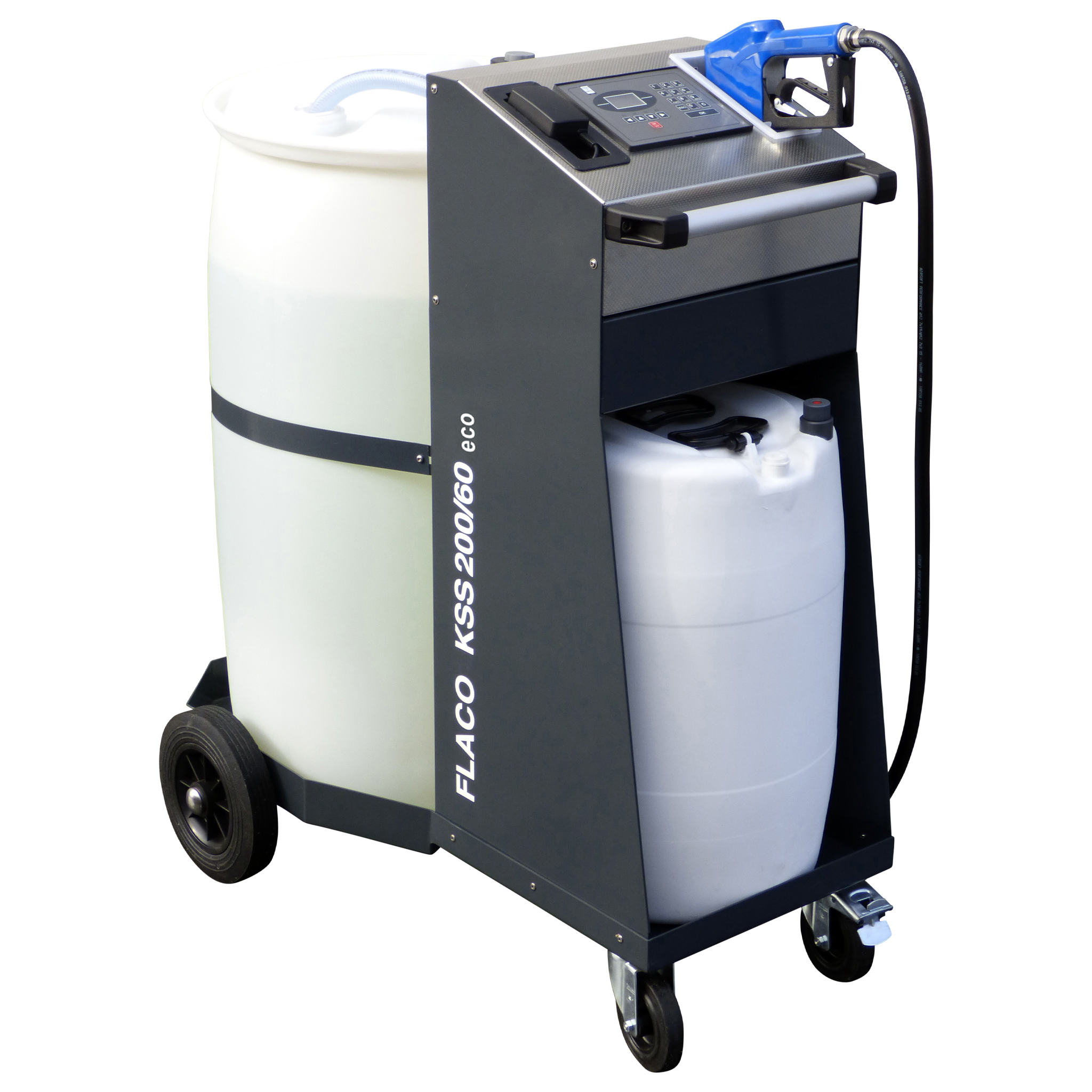 Die Komplettwagen FLACO KSS 200/60 eco und pro bieten einen wirtschaftlichen Einstieg in die bedarfsgerechte Befüllung. Sie verfügen über einen 200 Liter großen Wassertank und eine digitale Steuereinheit. Darüber hinaus bietet das Pro-Modell die Möglichkeit, alle Prozessdaten des Nachfüllens nach TRGS 611 zu dokumentieren.